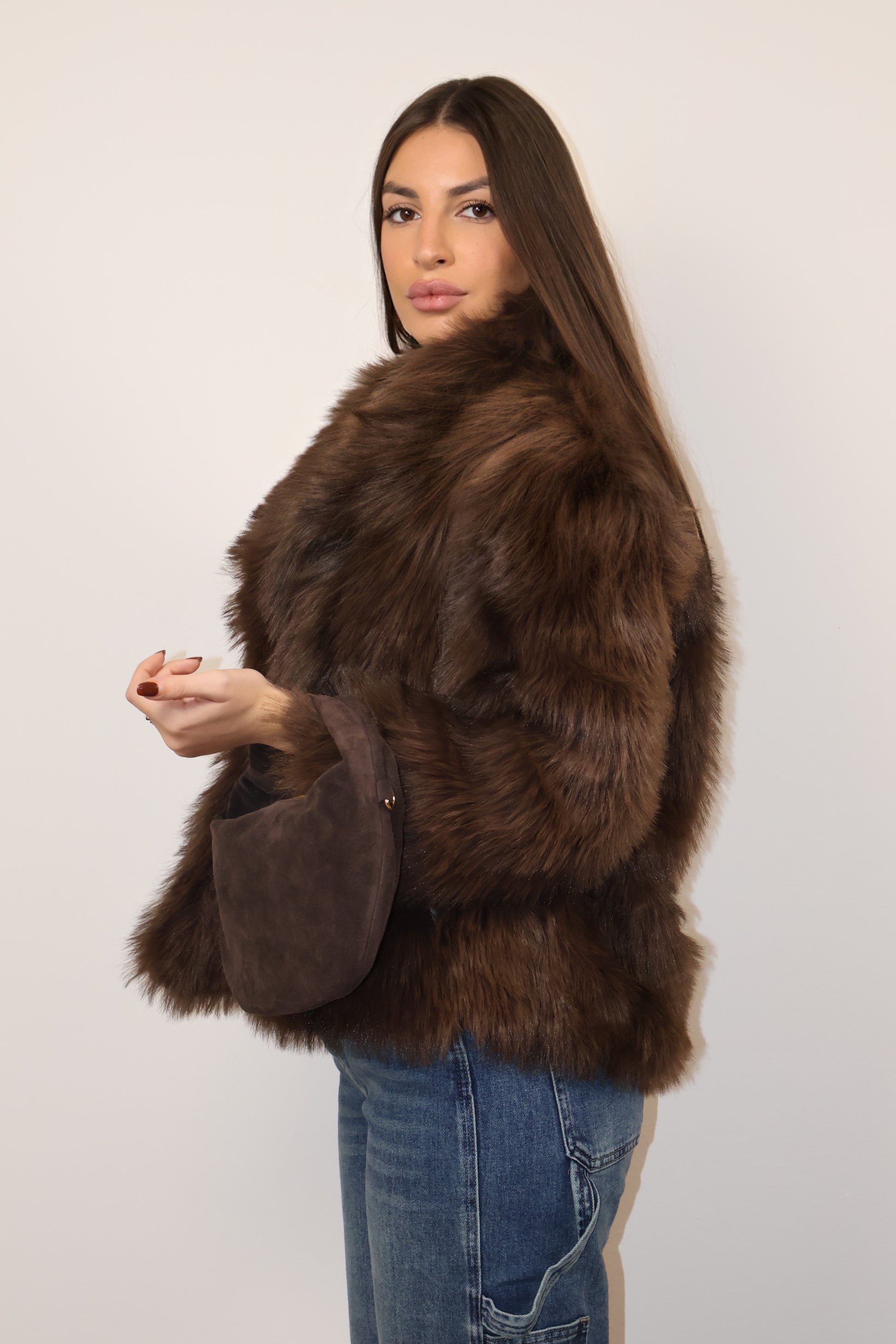 La pelliccia Orlando è un capo elegante e senza tempo, realizzato in eco-pelliccia morbidissima dall’effetto super realistico. Il taglio è dritto e non oversize, pensato per valorizzare la figura senza creare volume e mantenendo una silhouette pulita e raffinata.